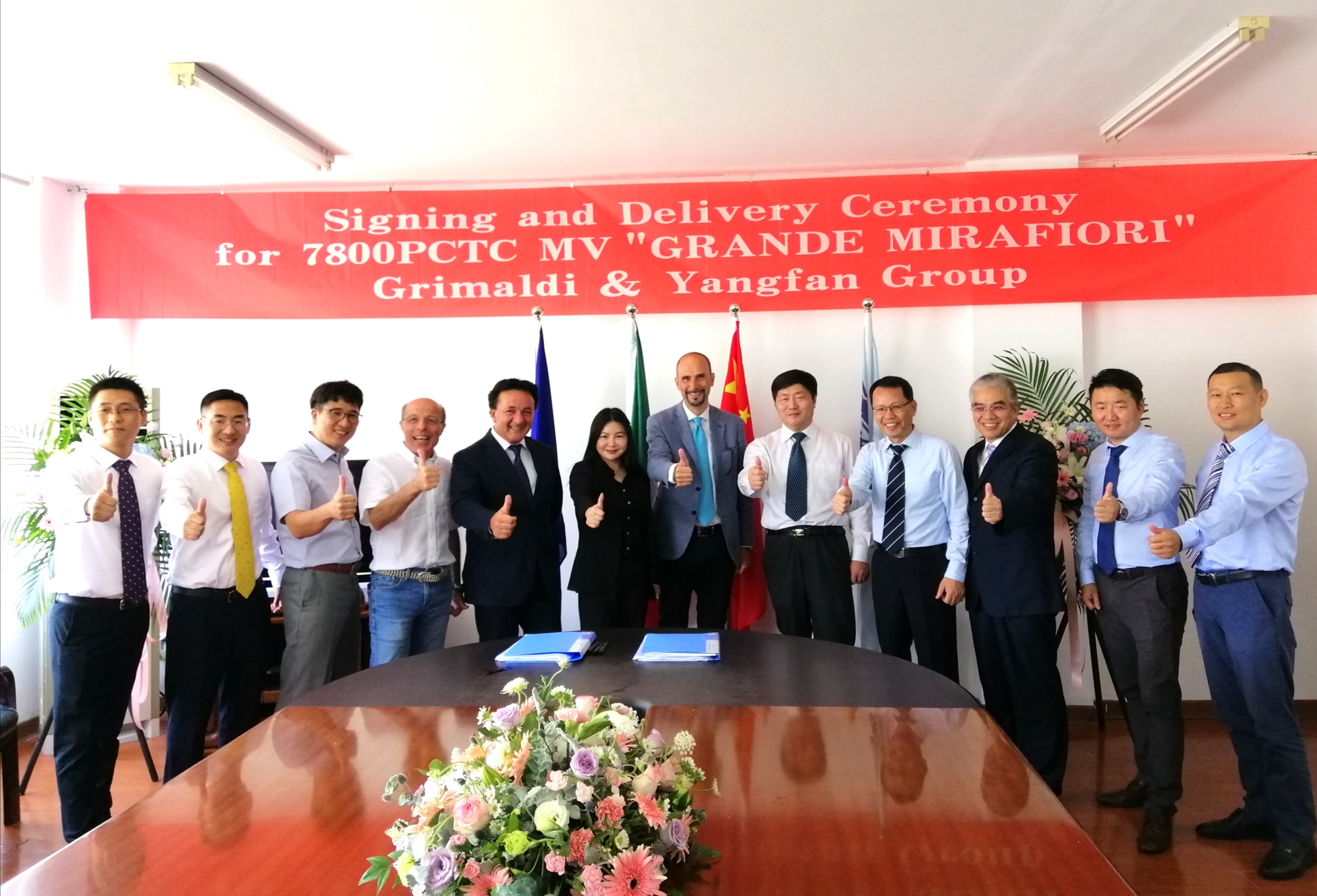 2019年9月12日上午,揚帆集團下屬浙江東海岸船業有限公司一艘7800車系列汽車滾裝船正式簽字交付。