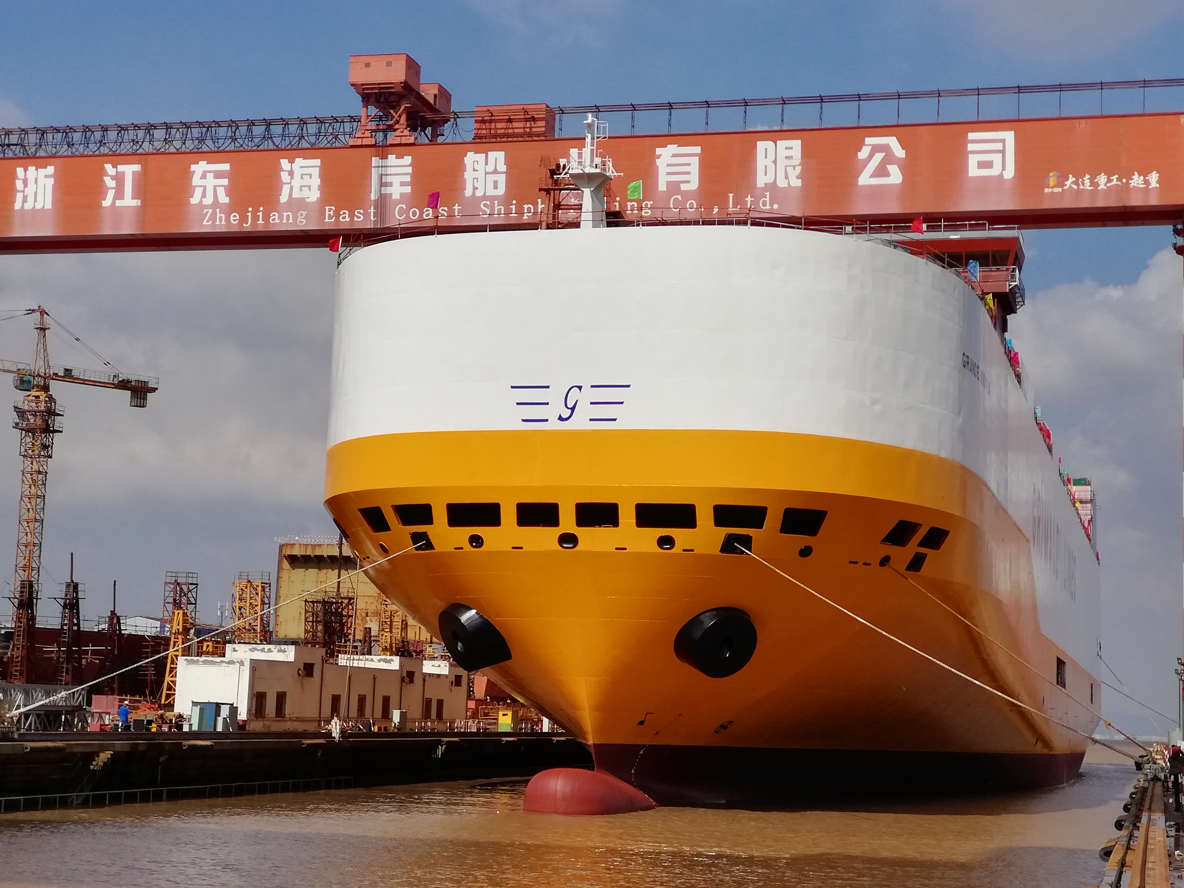 2019年10月19日上午,揚帆集團下屬浙江東海岸船業(yè)有限公司一艘7800PCTC系列汽車滾裝船順利下水,出塢狀態(tài)完整性超越已交付的兩艘系列船。
