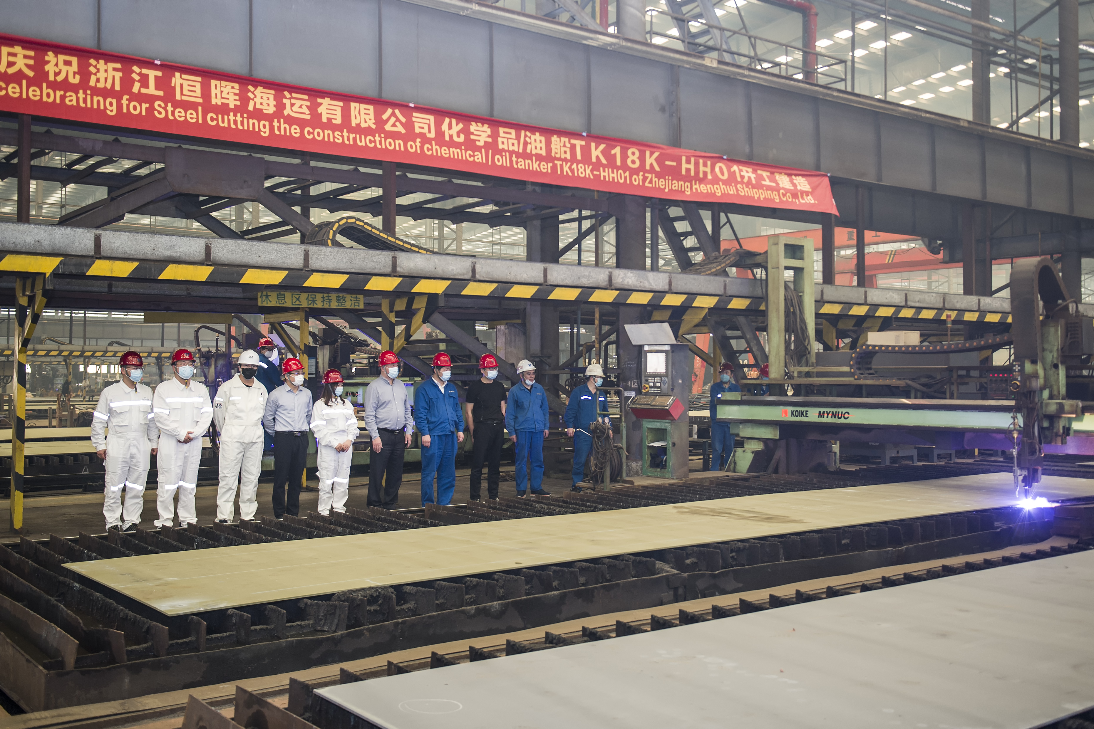 5月19日上午9點28分,由揚帆集團為浙江恒暉海運有限公司建造的18,000噸成品油/化學品船在東海岸船業有限公司聯合車間正式點火開工,浙江恒暉海運公司董事長和執行董事、揚帆集團總裁等一行參加了開工儀式。該項目合同于2020年1月1日正式簽訂并生效,實際開工時間比原計劃提前近一個月,為船舶如期交付奠定了基礎。