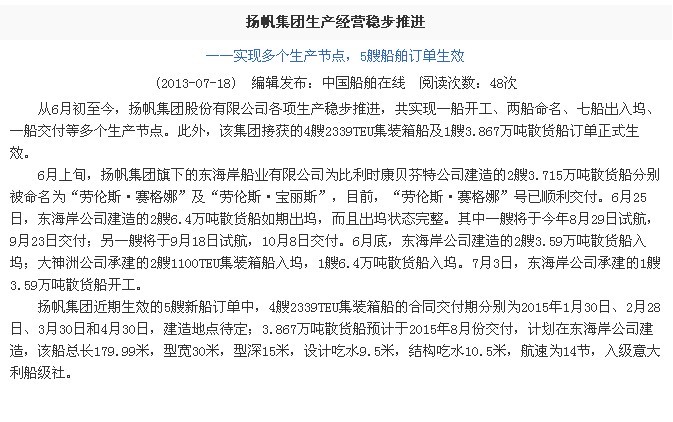 中國船舶在線:揚帆集團:“專案”推動降成本
